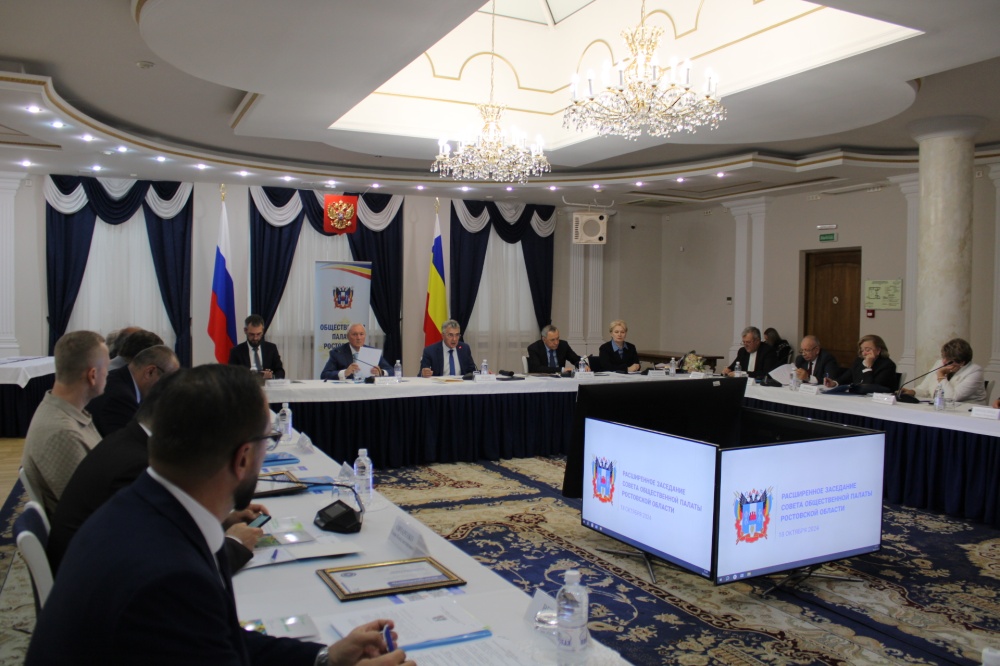 18 октября 2024 года в Ростовском общественном собрании состоялось расширенное заседание Совета Общественной палаты Ростовской области. В мероприятии приняли участие председатель Общественной палаты Ростовской области Вячеслав Митрофанович Кущев, первый заместитель председателя Зерщиков Юрий Стефанович, а также заместители председателя и председатели комиссий Общественной палаты РО.