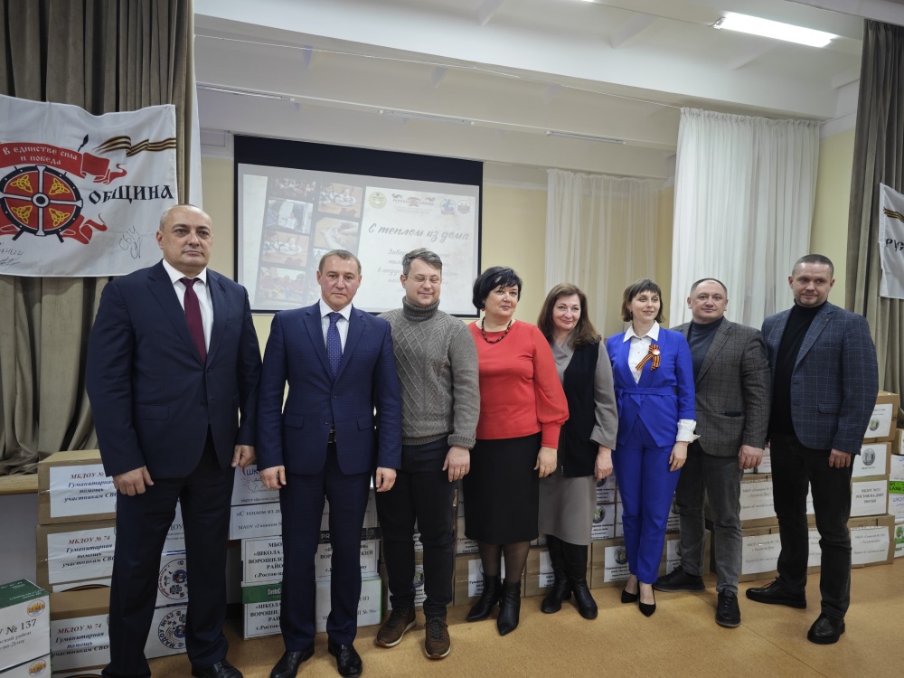 В МАОУ "Школа 96 Эврика-Развитие" прошло подведение итогов первого этапа проекта "С теплом из дома". Инициатива, организованная Русской общиной г. Ростова-на-Дону при поддержке Общественной палаты Ростовской области в лице ее представителя Дмитрия Алексеевича Чернова, направлена на помощь защитникам Отечества.